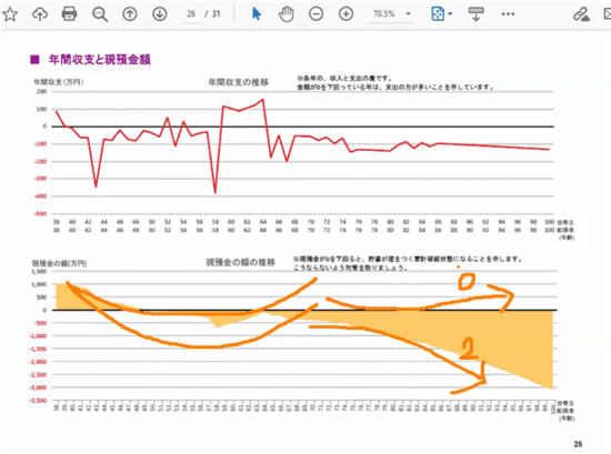 同じ相談事例であっても、人によってライフプランシミュレーション結果のグラフに差が出ていることも。